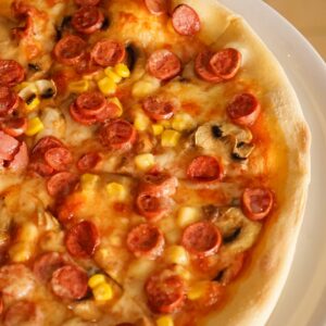 Піца – улюблена всіма страва, яка походить з Італії. Зазвичай він складається з круглої, плоскої основи з тіста, покритого томатним соусом, сиром і різними начинками, які можуть включати м’ясо, овочі та зелень. Тісто зазвичай готується з пшеничного борошна, води, дріжджів і оливкової олії, хоча є варіації з використанням різних інгредієнтів для скоринки.